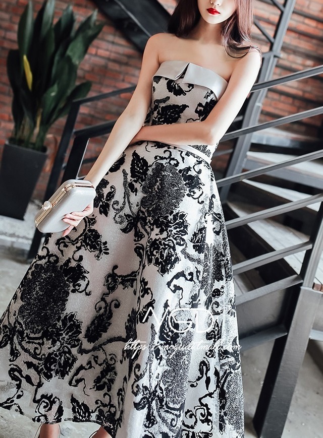 「破格」 ドレス レース ベアトップ ロング プリンセスライン パーティー