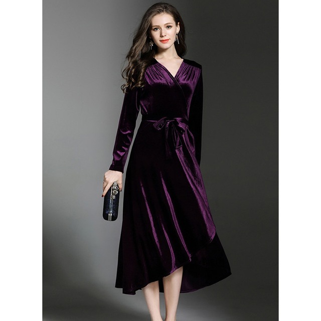 ☆SALE☆ ★Vネック&ラップ風シルエット♪イレヘムベロアドレス全2色★