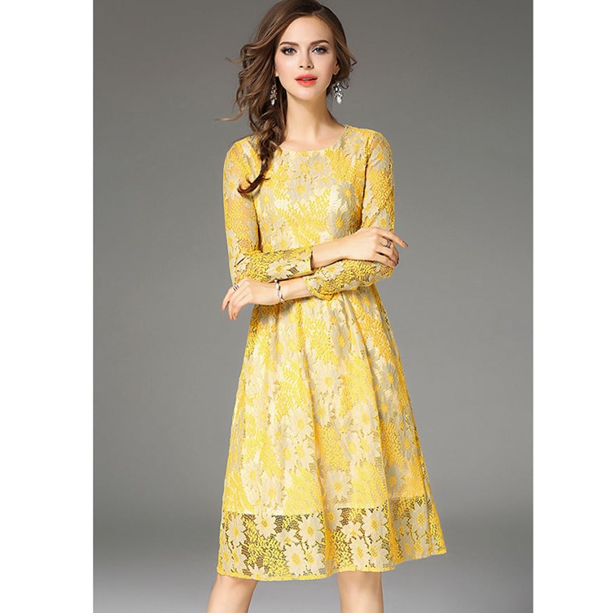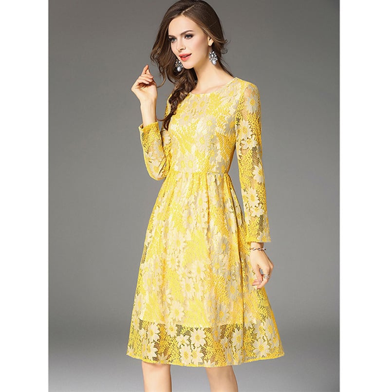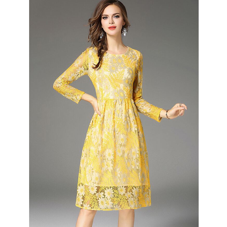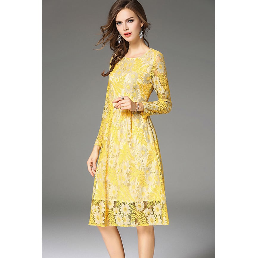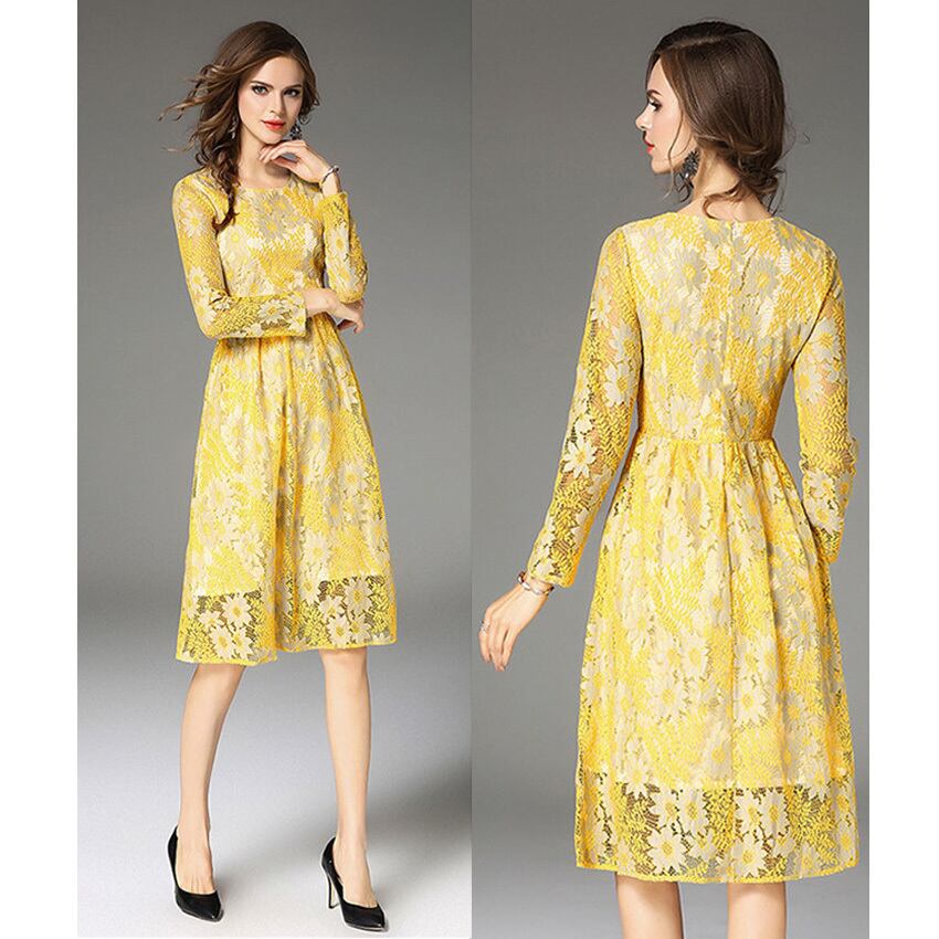 ☆SALE☆ ★あでやかイエロー♪デイジーフラワー柄レースワンピース★