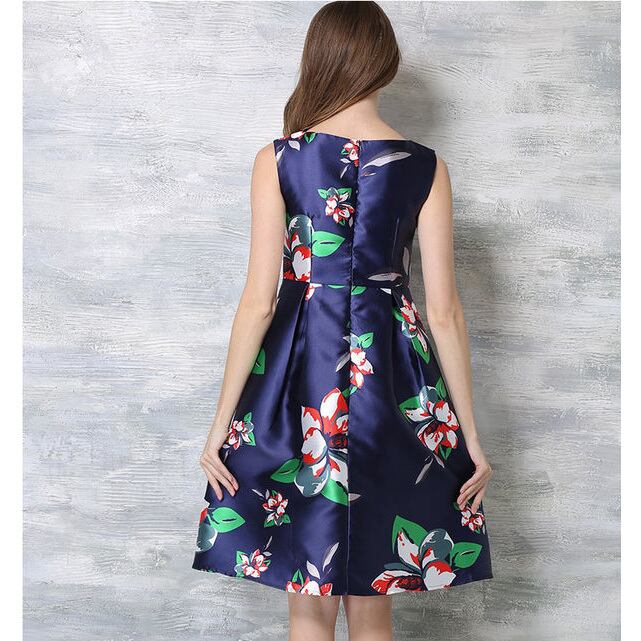 ☆SALE☆ ★あでやか大花柄プリント♪スリーブレスネイビーワンピース★