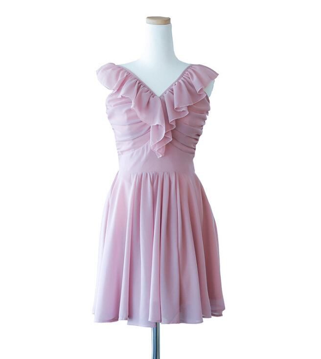 ☆SALE☆ ★華やかドレープフリル♪ピンクシフォンミニワンピース★