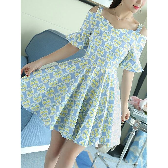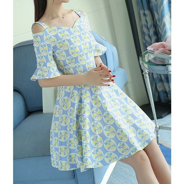 ☆SALE☆ ★Cuteなフレアースリーブ♪オフショル風ワンピース全2色★