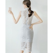☆SALE☆ ★Vネック胸元フリル♪バックスリット入りレースタイトドレス★