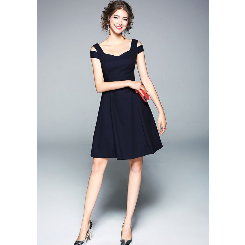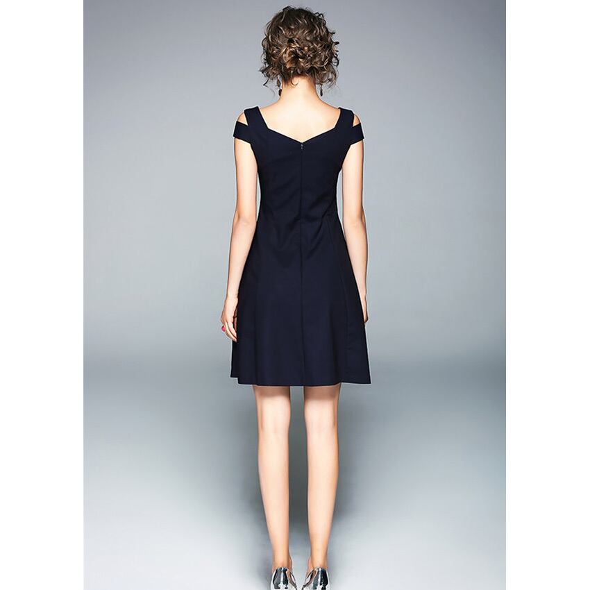☆SALE☆ ★Wストラップオープンショルダー♪シンプルAラインワンピース★