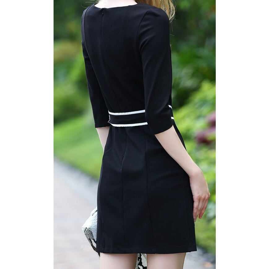 ☆SALE☆ ★アクセントボタンライン♪ウエストマーク七分袖ミニワンピ★