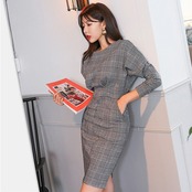 ☆SALE☆ ★アシンメトリー段差ヘム♪グレンチェック柄ワンピース★