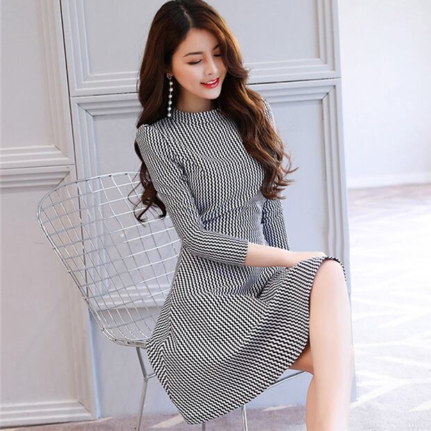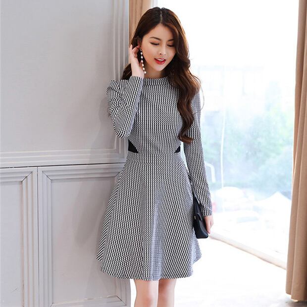 ☆SALE☆ ★ウェーブストライプ柄♪細見えウエストマークワンピース★