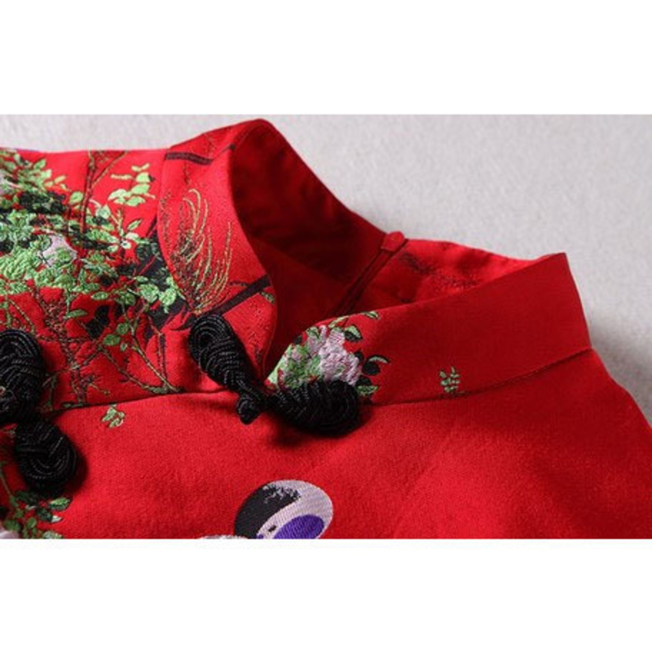 ☆SALE☆ ★オリエンタル刺繍柄♪チャイナカラー七分袖ワンピース★