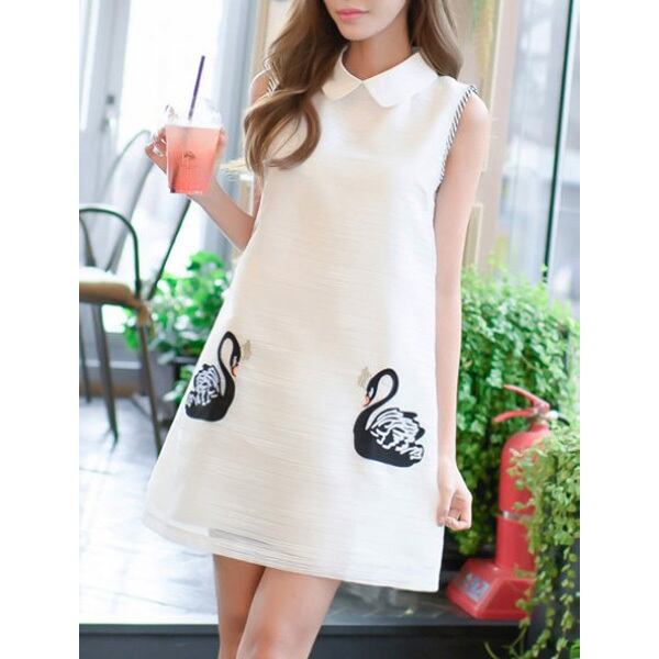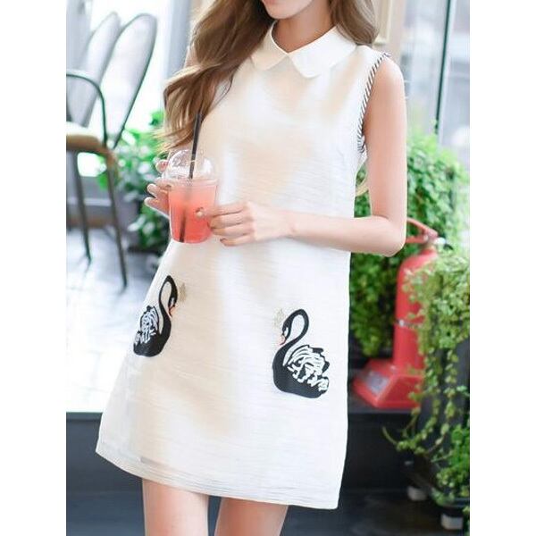 ☆SALE☆ ★キング黒スワン♪白襟ノースリAラインミニワンピース★