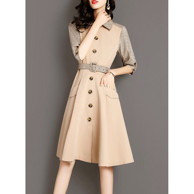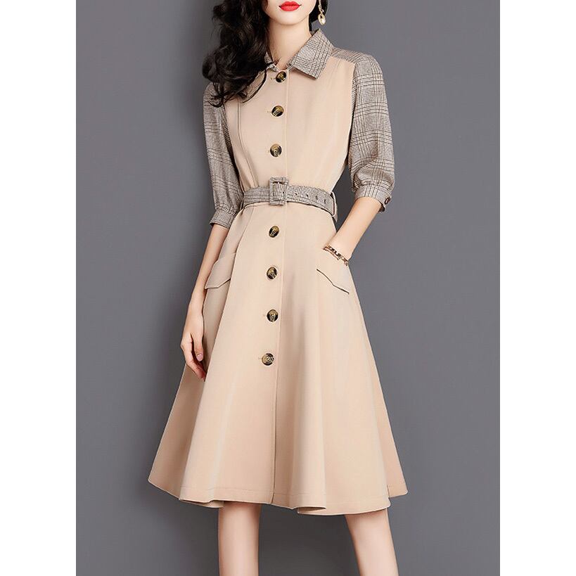 ☆SALE☆ ★グレンチェック柄スリーブ&共布ベルト♪前ボタンワンピース★