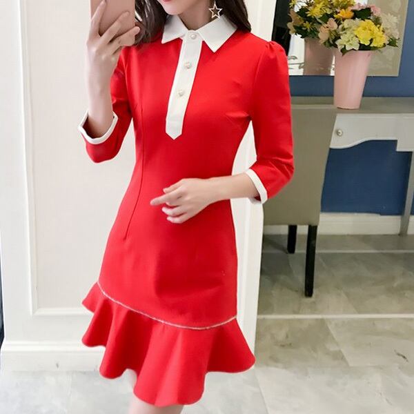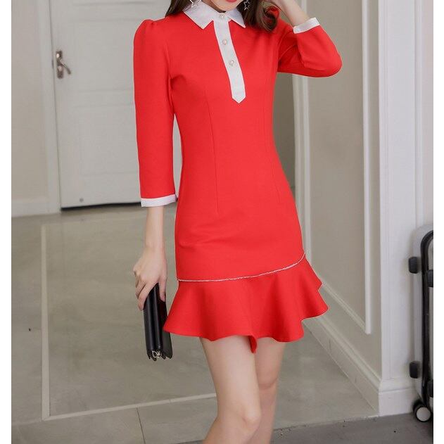 ☆SALE☆ ★コントラスト白ライン♪フェミニンフリルAラインワンピース★