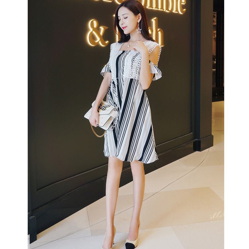 ☆SALE☆ ★ストライプ×白レース♪オープンショルダーアシメ柄ワンピ★