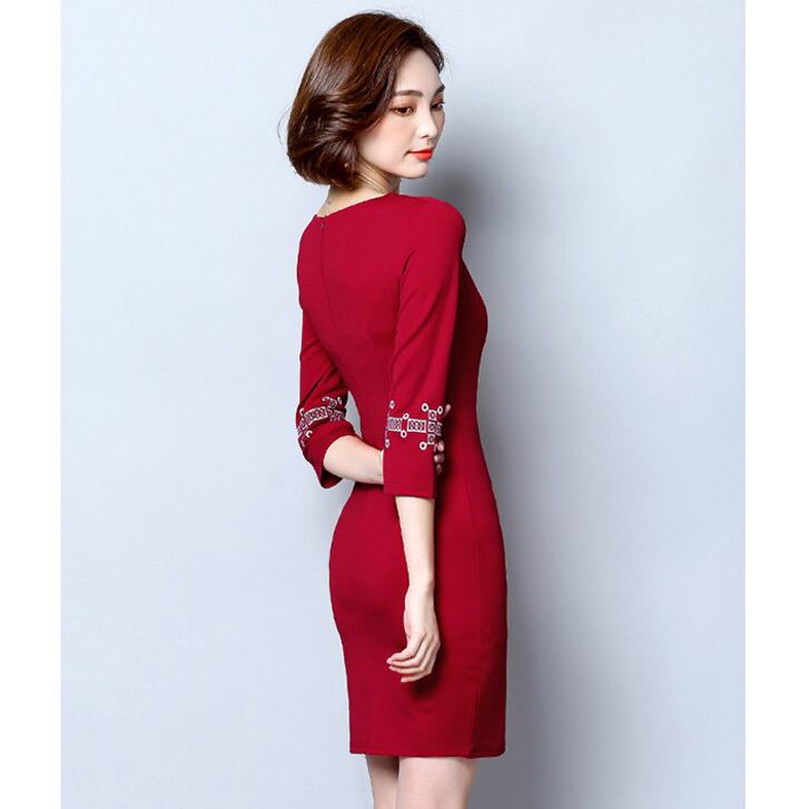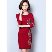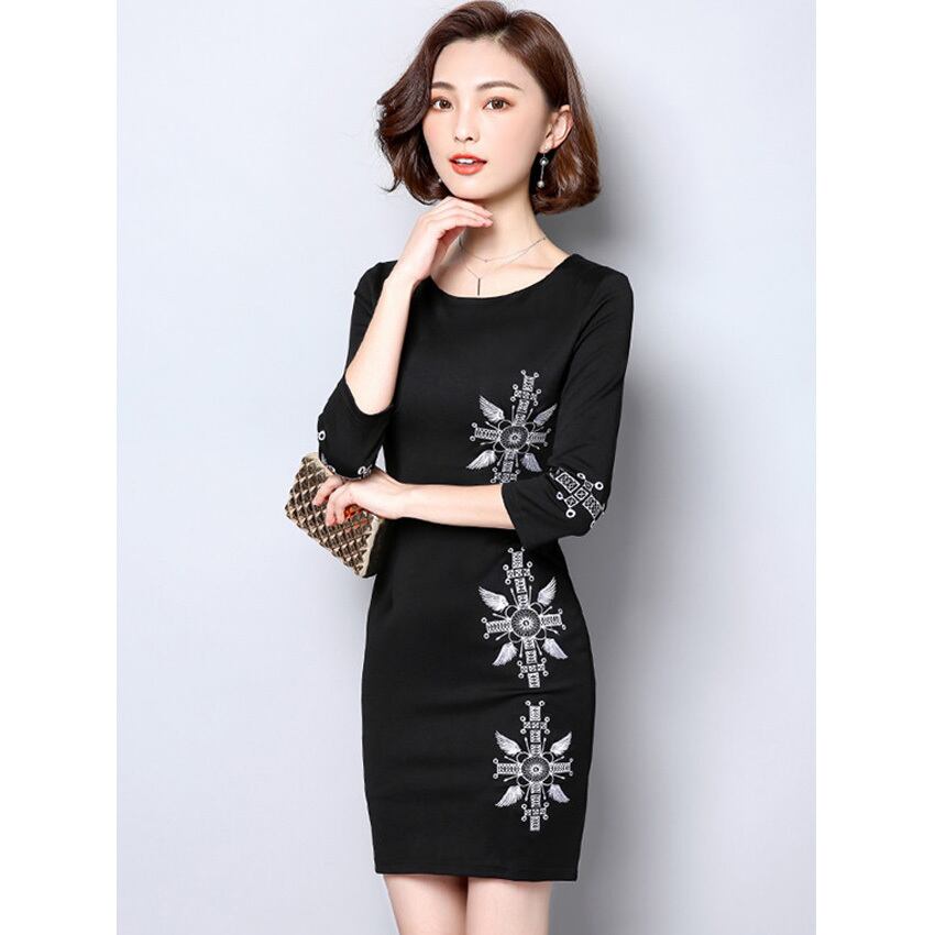 ☆SALE☆ ★スノークリスタル柄刺繍♪七分袖シフトワンピース全2色★