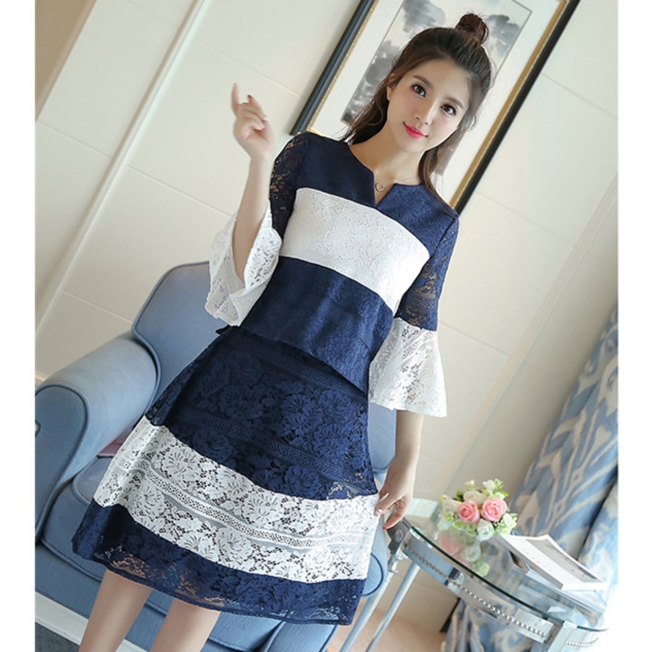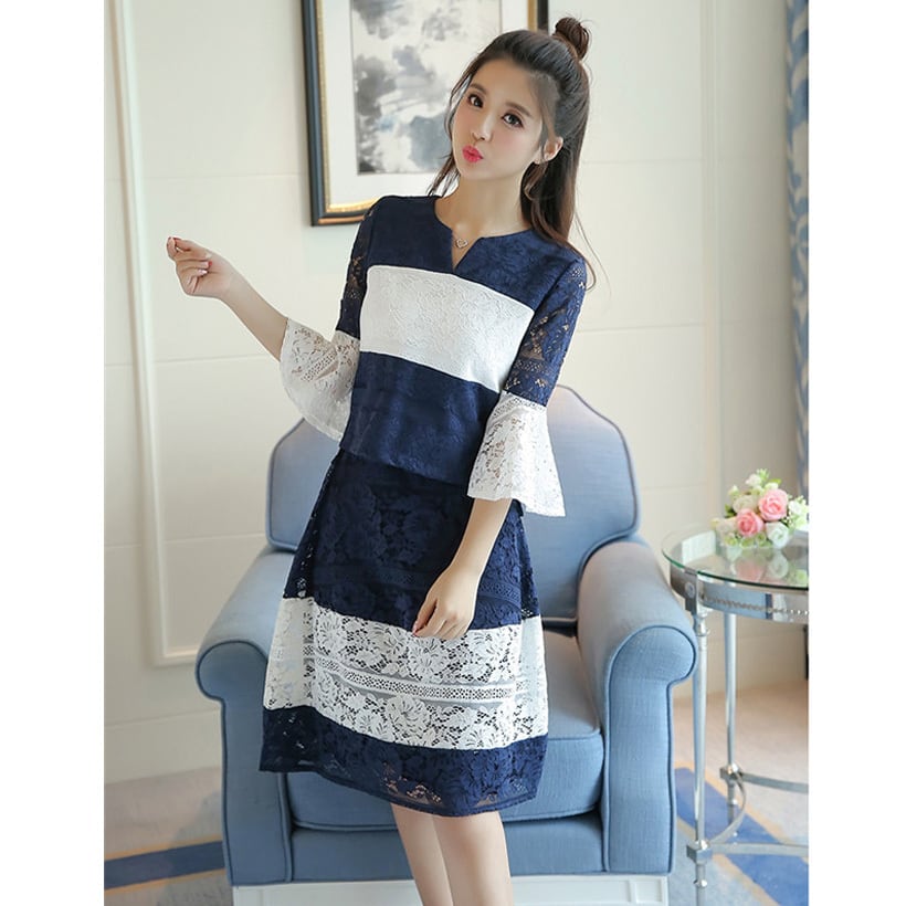 ☆SALE☆ ★セットアップ♪バイカラーレーストップ&スカートSET★