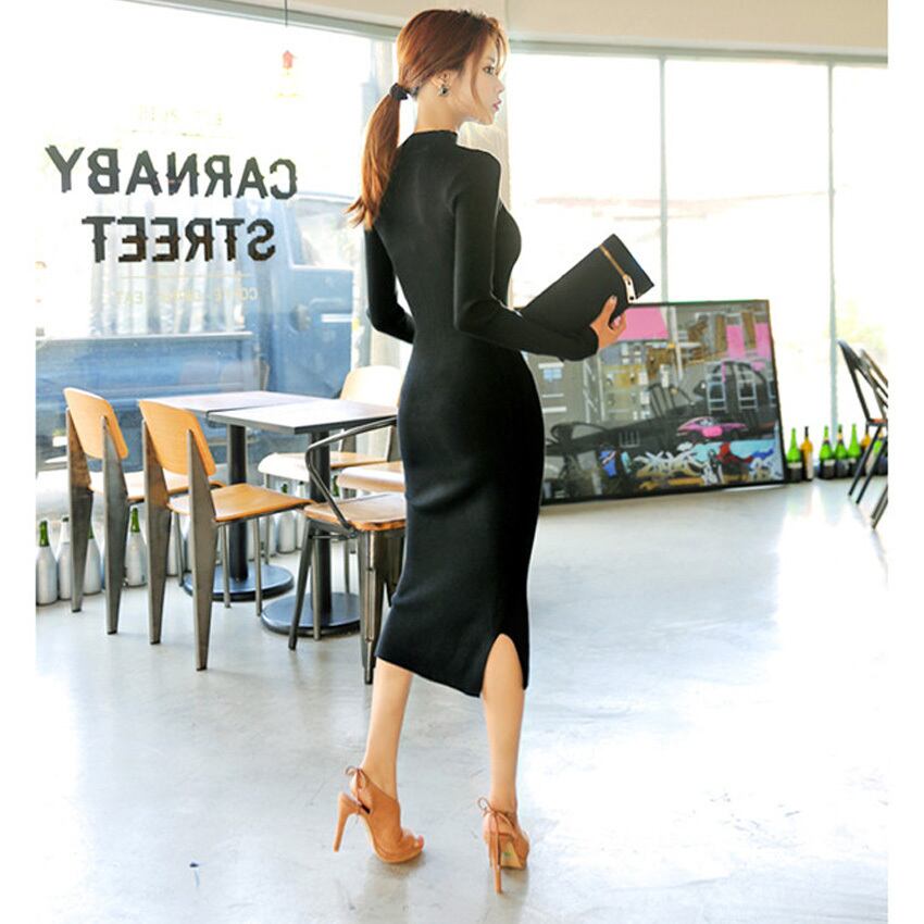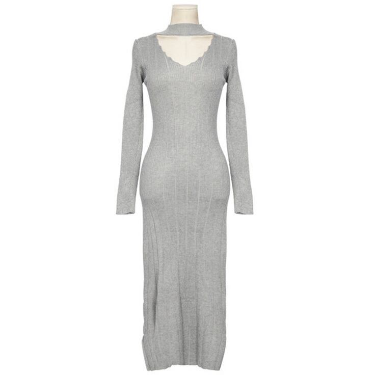 ☆SALE☆ ★チョーカー風ウェーブVネック♪タイトニットワンピ全3色★