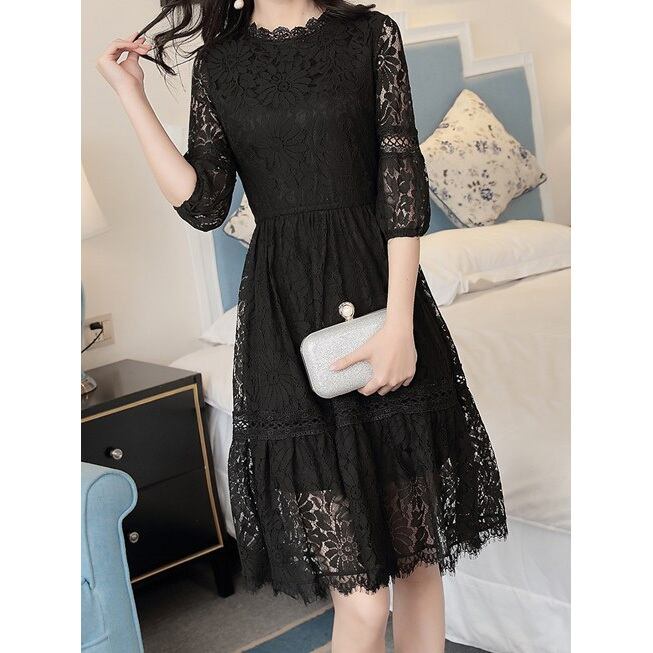 ☆SALE☆ ★デイジーフラワー柄♪透け袖ティアード風ワンピース全2色★