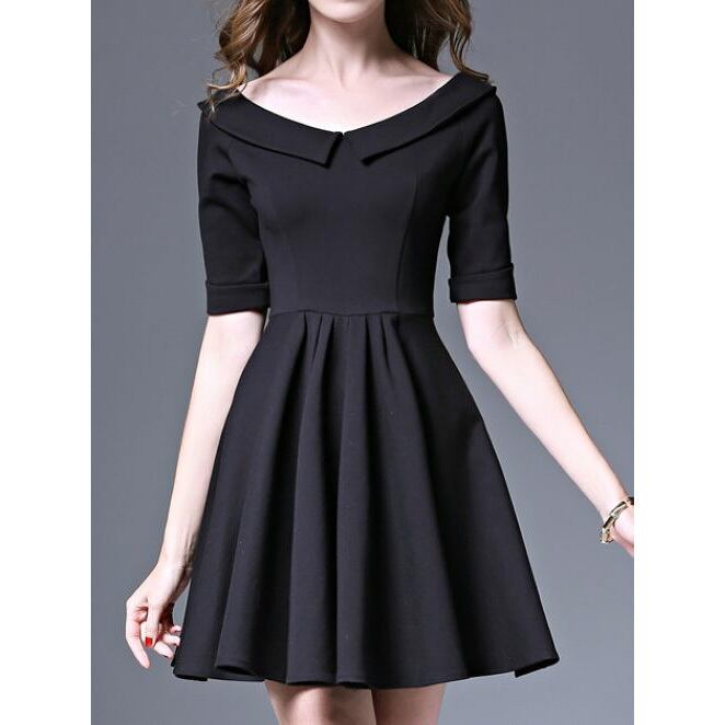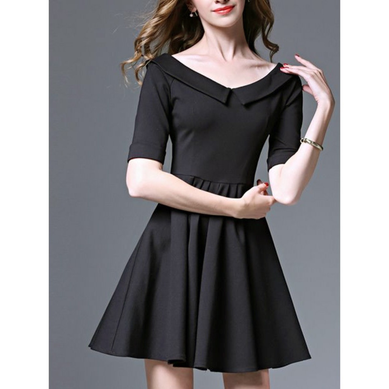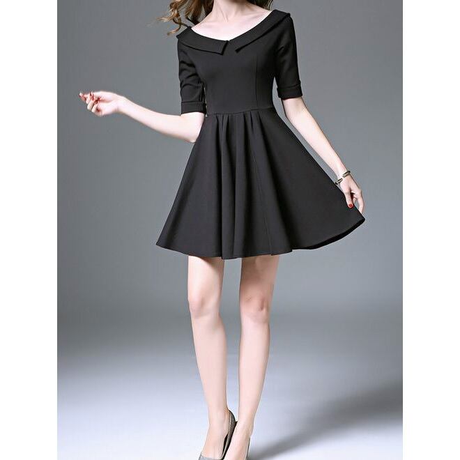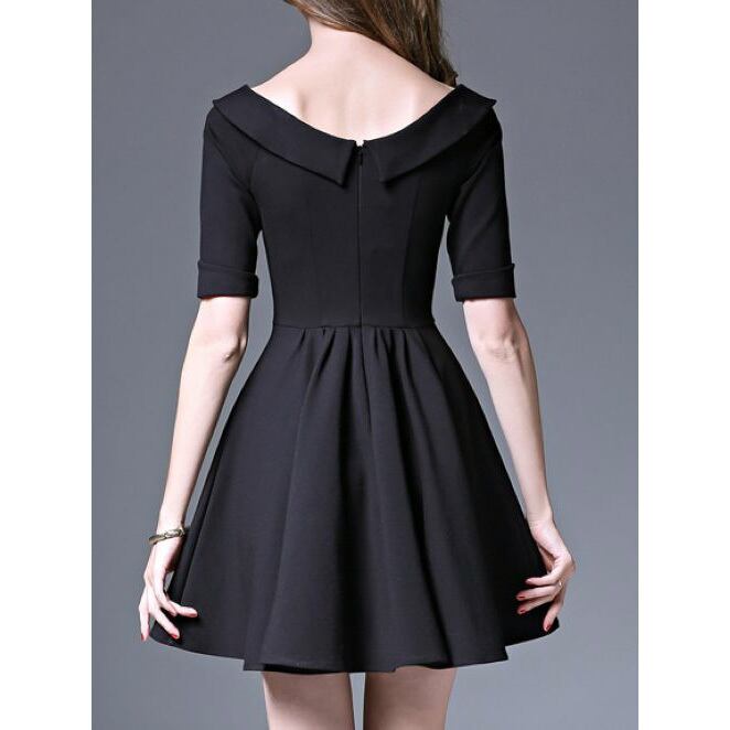 ☆SALE☆ ★デコルテあきフラットカラー♪黒フレアーミニワンピース★