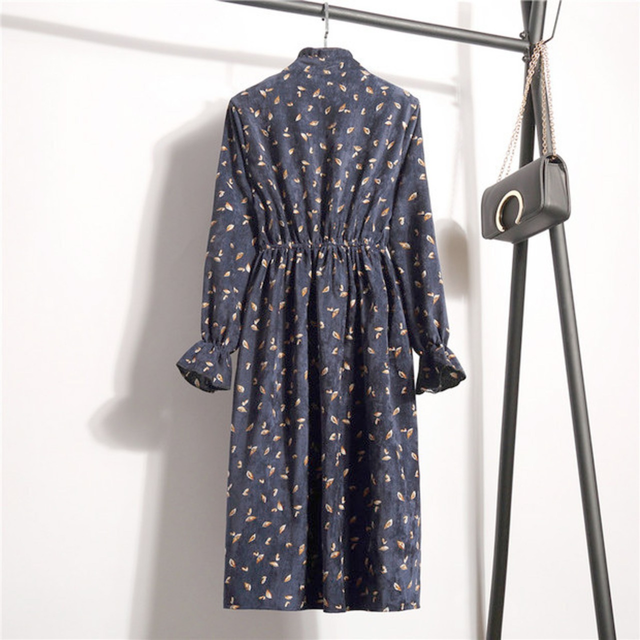 ☆SALE☆ ★ナチュラル木の葉柄♪コーデュロイ風ミディワンピース♪