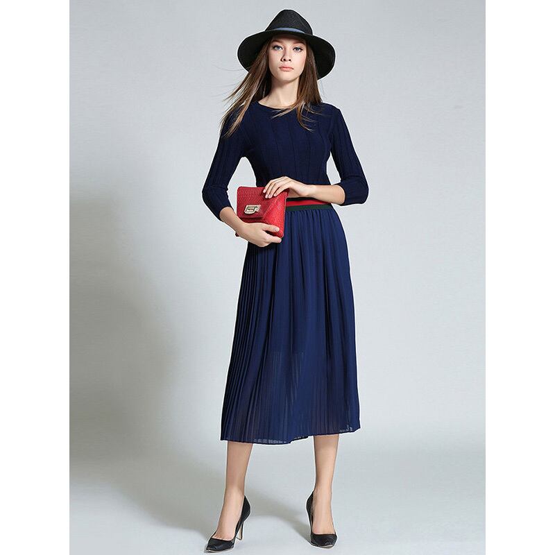 ☆SALE☆ ★ニットトップ異素材Mixプリーツ♪ウエストマークワンピース★