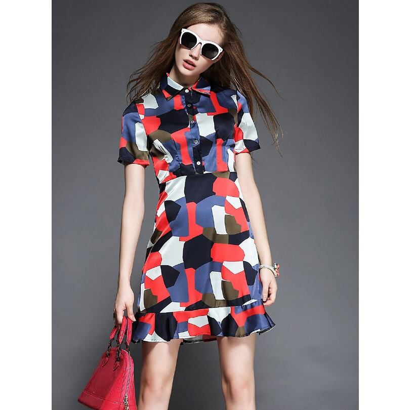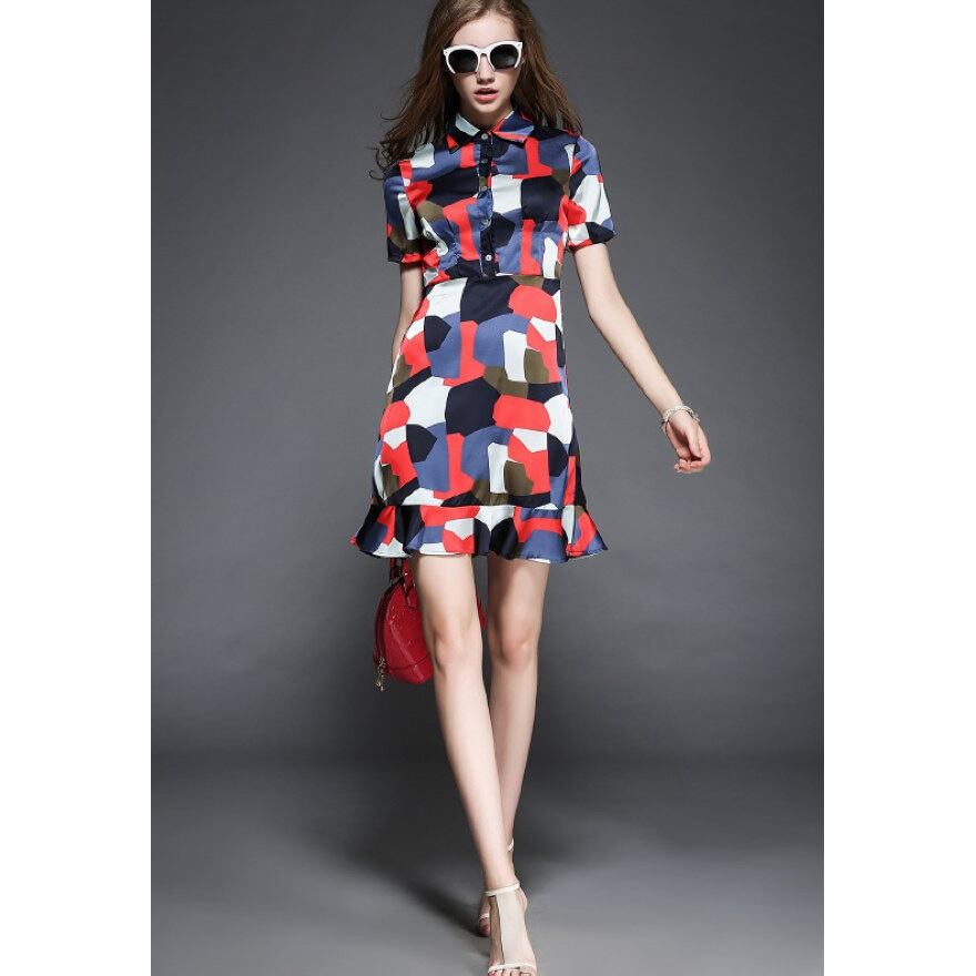 ☆SALE☆ ★パッチ風カラーブロック柄♪裾フリルワンピース★
