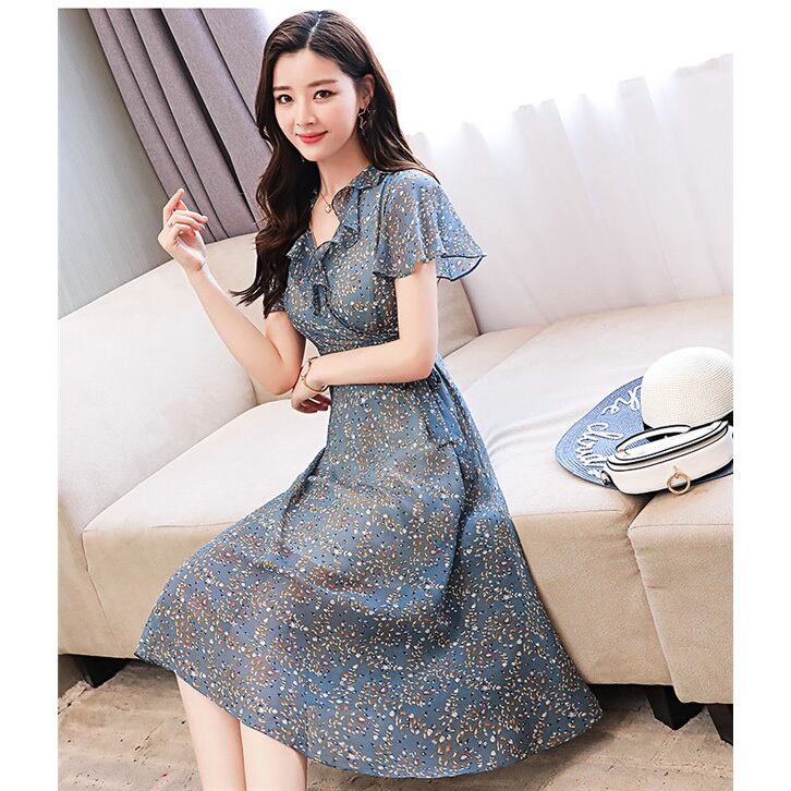 ☆SALE☆ ★フェミニンシフォンフリル♪サイドリボンフレアーワンピース★
