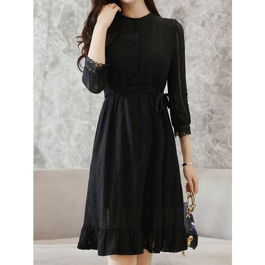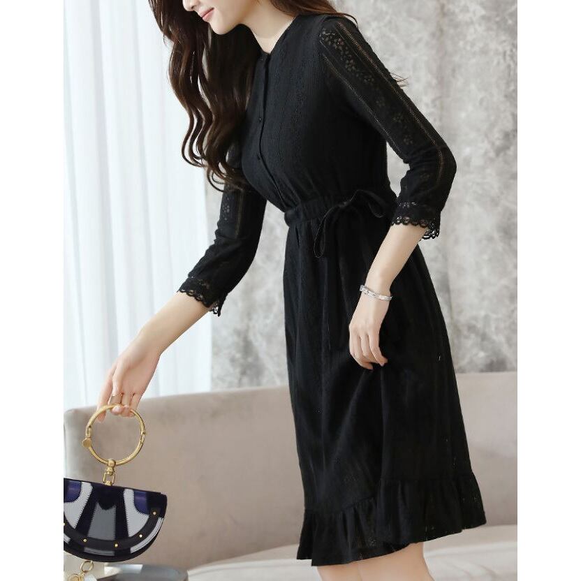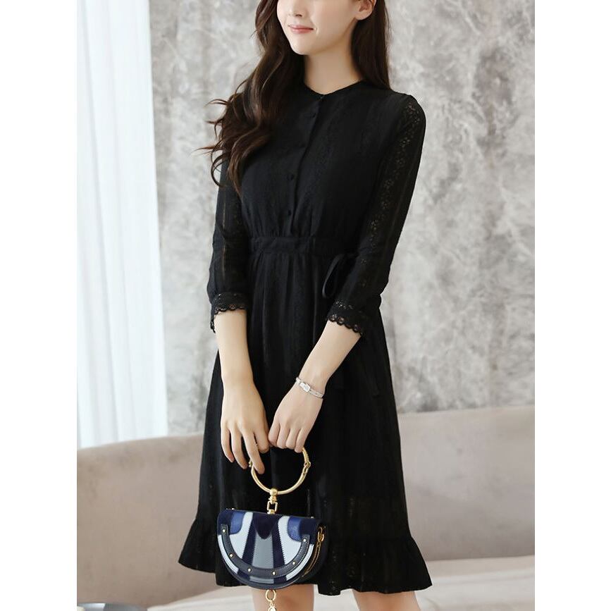☆SALE☆ ★フェミニンフレアヘム♪フラワー黒レースセミシアーワンピ★
