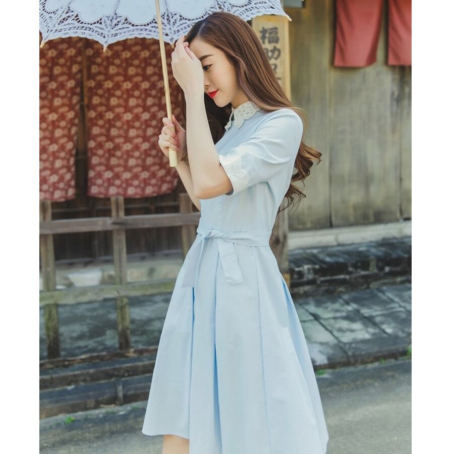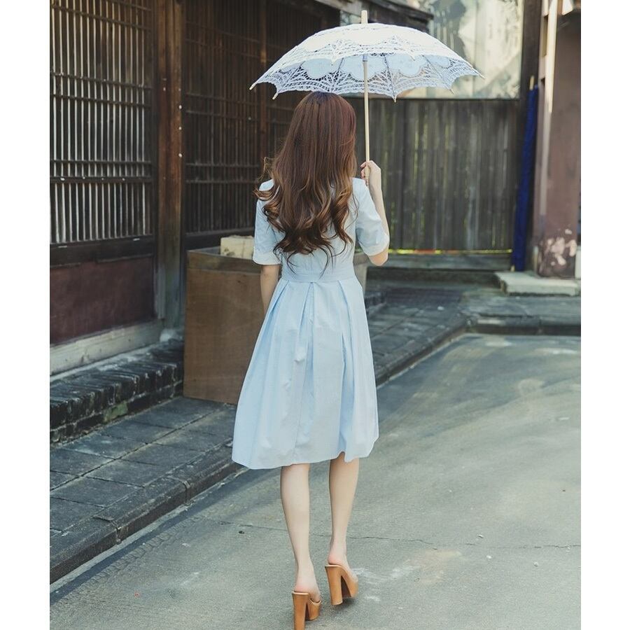 ☆SALE☆ ★フェミニン白レース襟♪リボンベルト&プリーツワンピース★