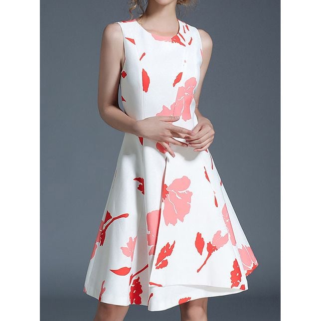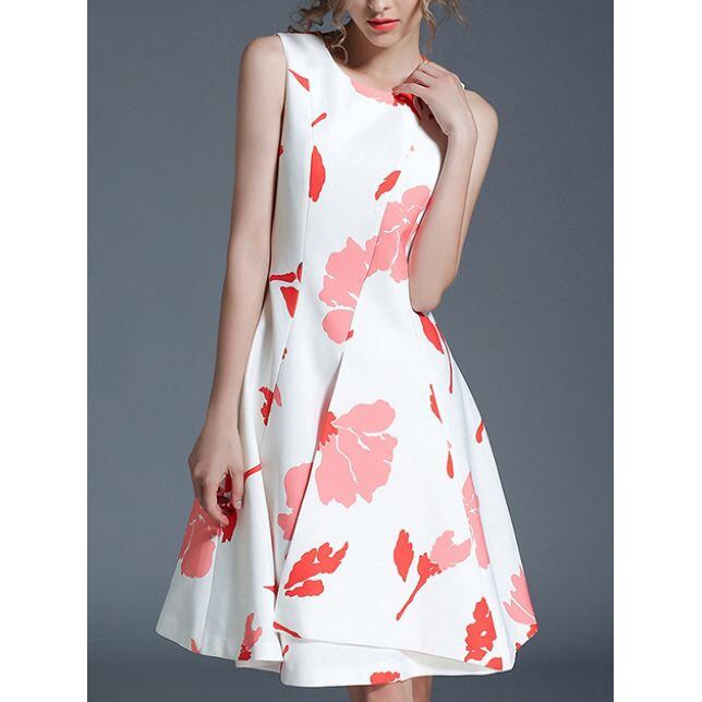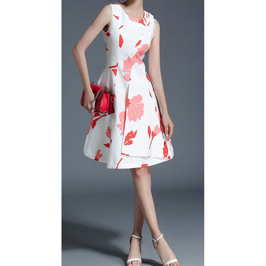 ☆SALE☆ ★フラワーシルエット柄♪折り返し風モダンAラインワンピース★