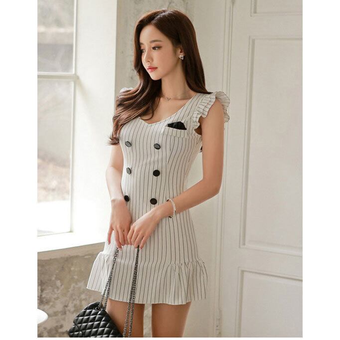 ☆SALE☆ ★フリルショルダー&フリルヘム♪ストライプ柄ミニワンピース★