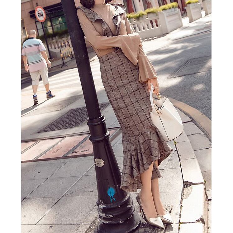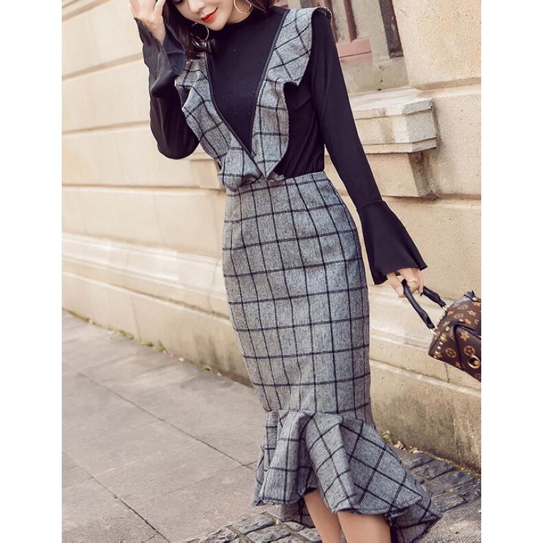 ☆SALE☆ ★フリルストラップ♪トップス付チェック柄ワンピセット全2色★