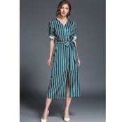 ☆SALE☆ ★プチフラワー使いストライプ♪セクシー前スリットゆるワンピ★