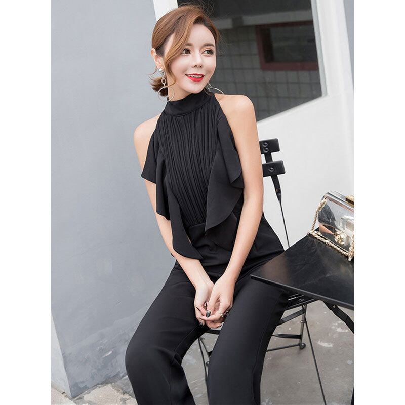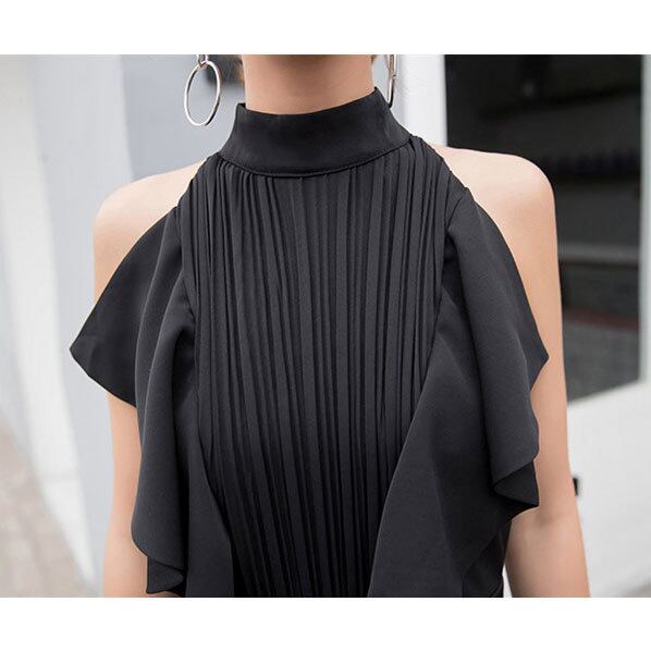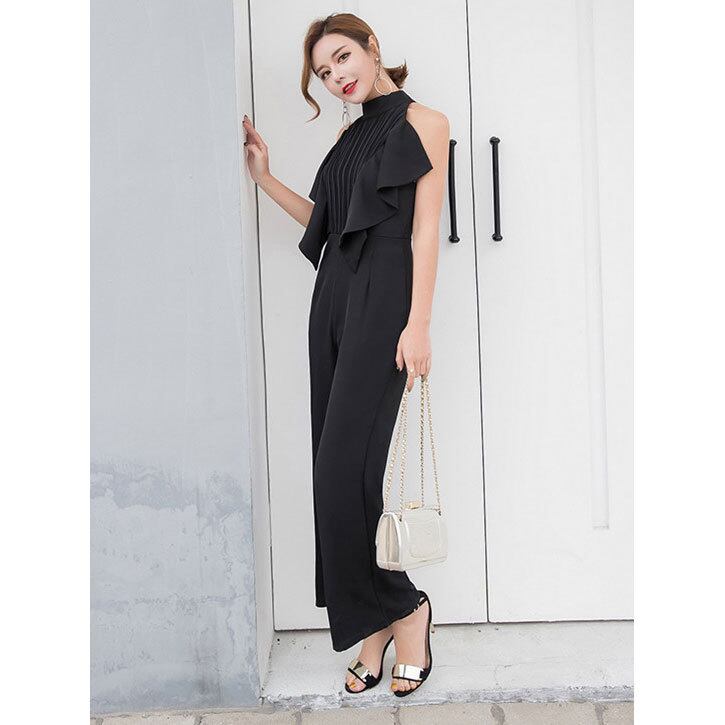 ☆SALE☆ ★ボリュームフリルトップ♪スタイリッシュ黒オールインワン★