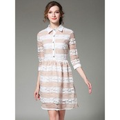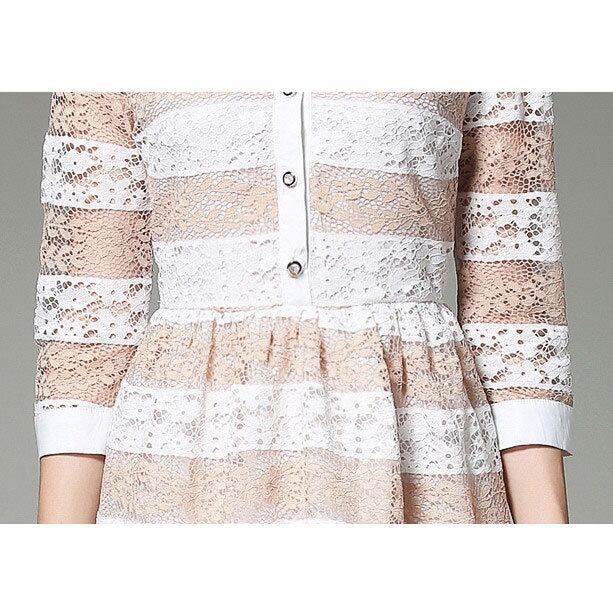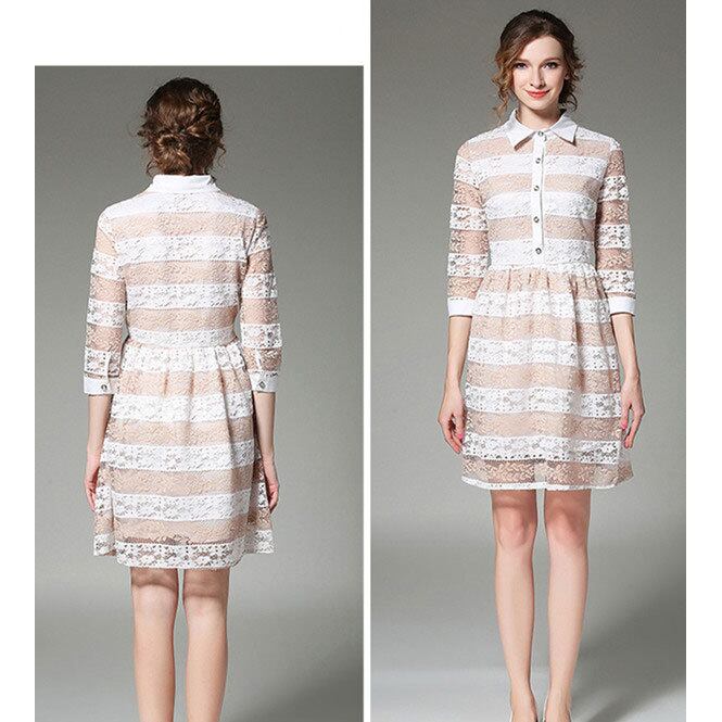 ☆SALE☆ ★ボーダー柄メッシュレース♪前ボタン白襟ミニワンピース★