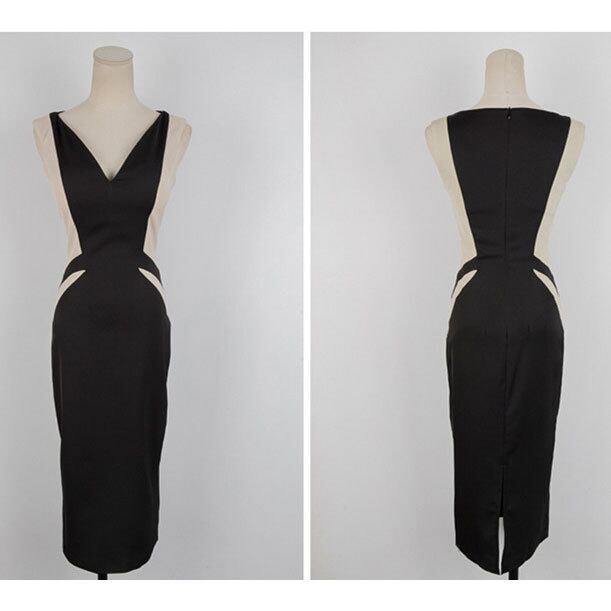 ☆SALE☆ ★メリハリラインバイカラー♪Vネックタイトワンピース★
