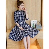 ☆SALE☆ ★リボンベルト♪チェック柄フレアーワンピース全2色★