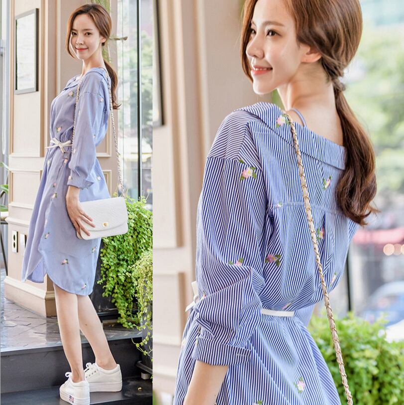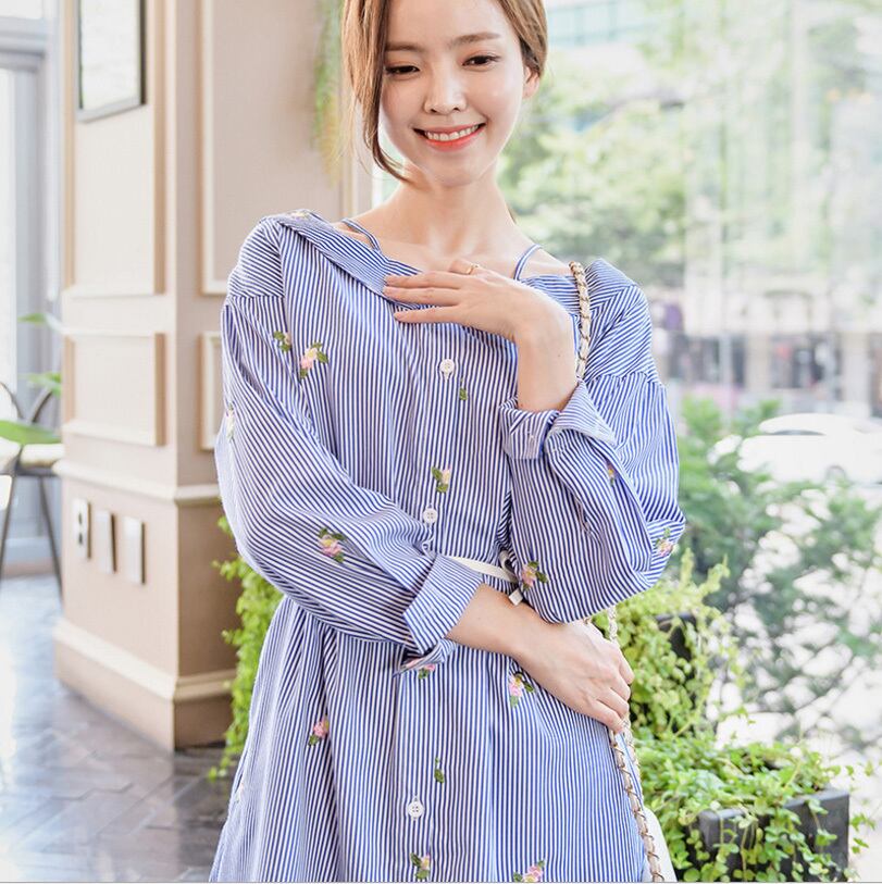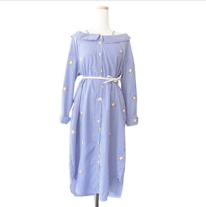 ☆SALE☆ ★上品デコルテ見せ♪ストライプ柄+花柄☆シャツワンピース★