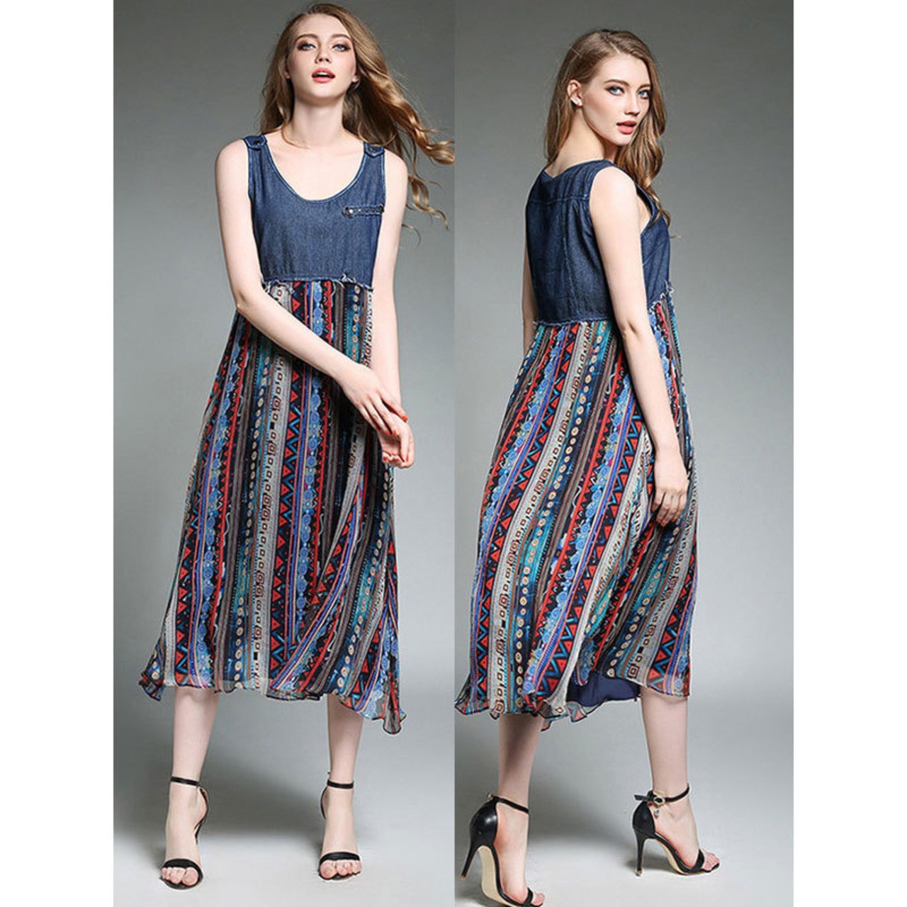 ☆SALE☆ ★可愛いデニムトップ☆ボヘミアンストライプ柄ワンピース★