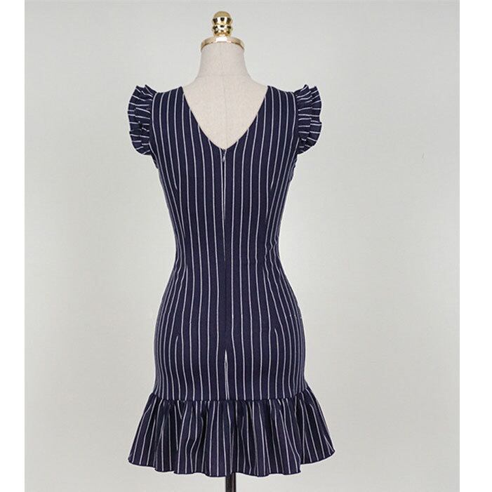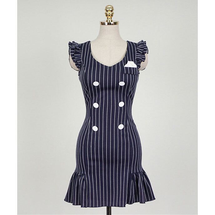 ☆SALE☆ ★可愛いフリル付スリーブ♪ペンシルストライプ柄ワンピース★