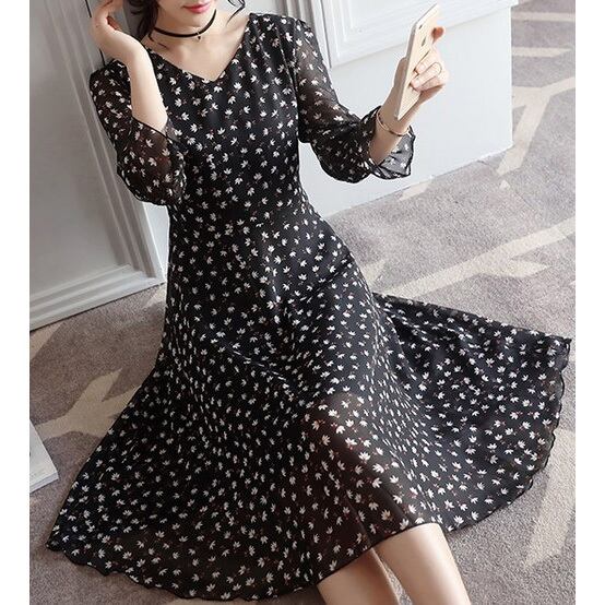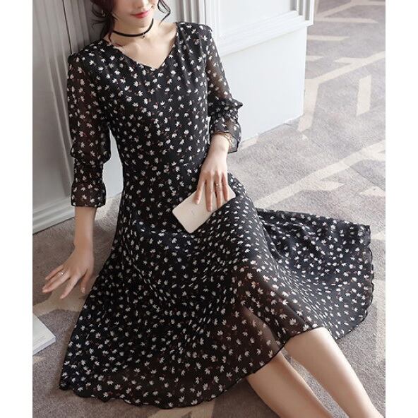 ☆SALE☆ ★可愛い小花柄♪透けスリーブ☆フレアーミディワンピース★