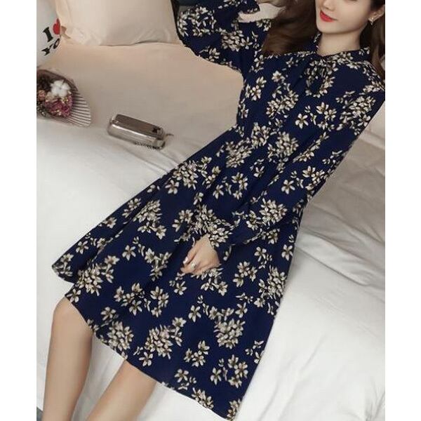 ☆SALE☆ ★可憐レトロな小花柄♪ネックボウタイフレアーワンピース★
