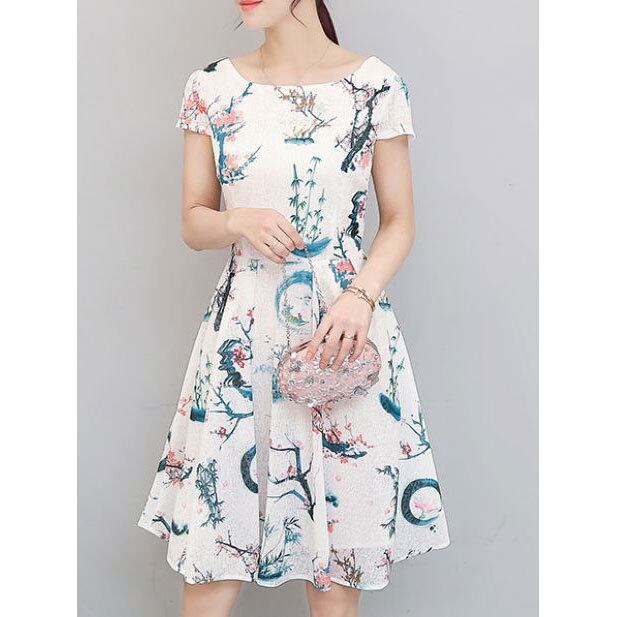 ☆SALE☆ ★和テイスト柄♪フレンチスリーブフレアーワンピース全3色★