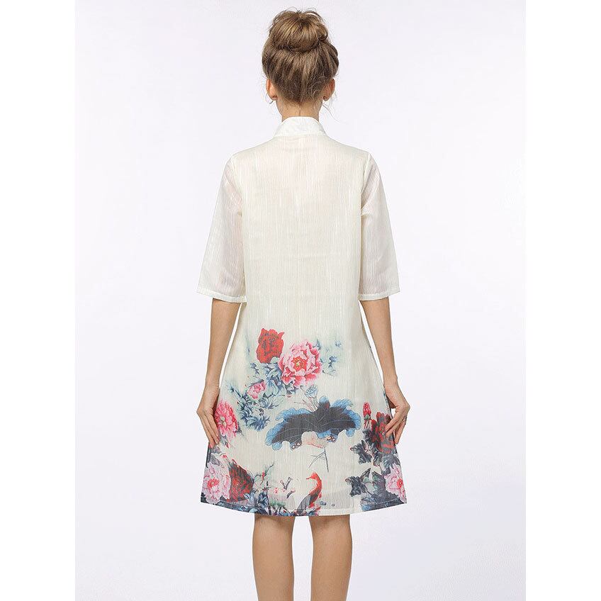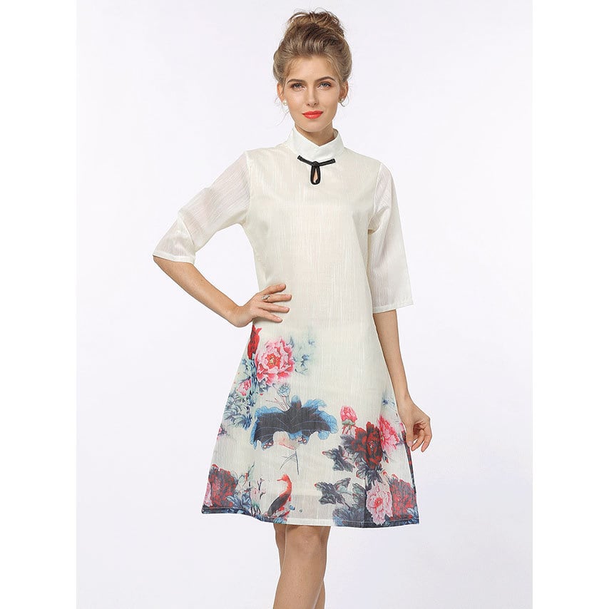 ☆SALE☆ ★和フローラル柄♪ハイネックAラインワンピース★