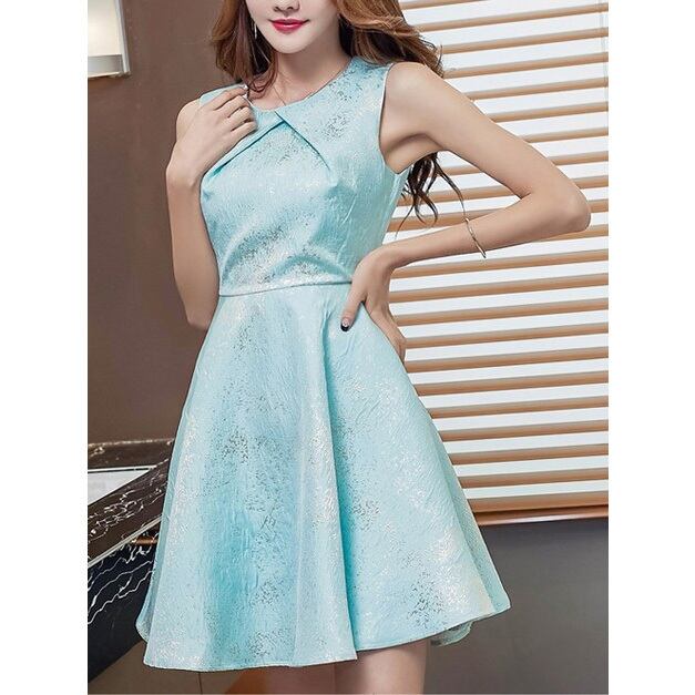 ☆SALE☆ ★変わりネックライン♪スリーブレスフレアーブルードレス★