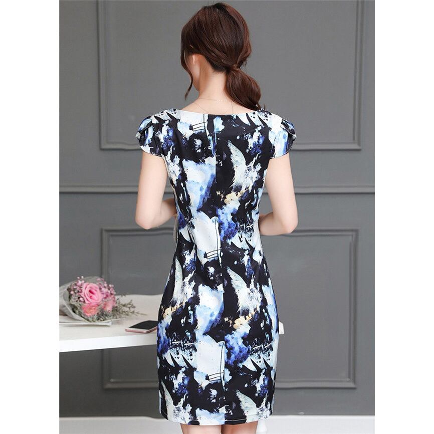 ☆SALE☆ ★寒色トーン幾何学的アートペイント柄♪シフトワンピース★