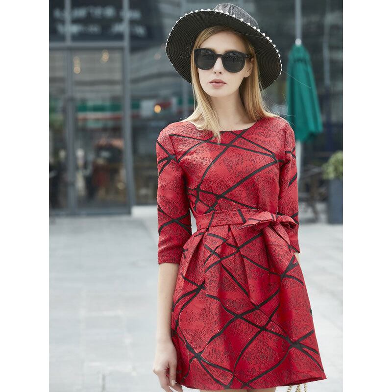 ☆SALE☆ ★幾何学ライン柄♪リボンベルトジャカードミニワンピース★