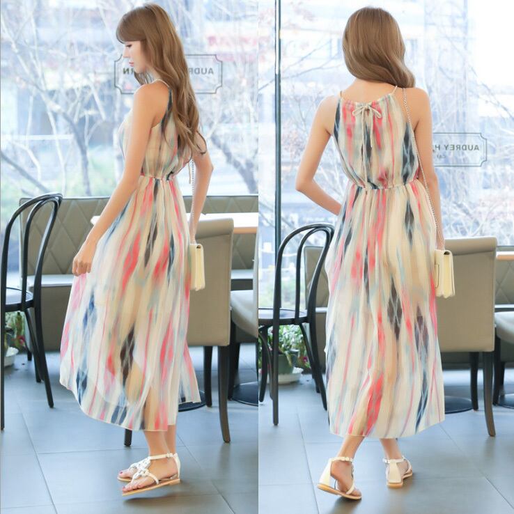 ☆SALE☆ ★彩り水彩風プリント♪ホルターネック風シフォンワンピース★