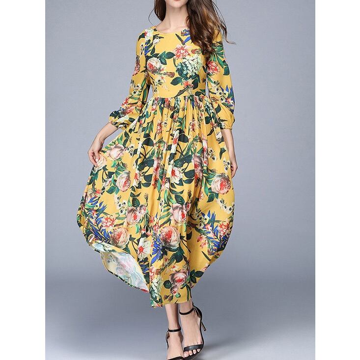 ☆SALE☆ ★彩り華やかフローラル柄♪フレアーロングワンピース★