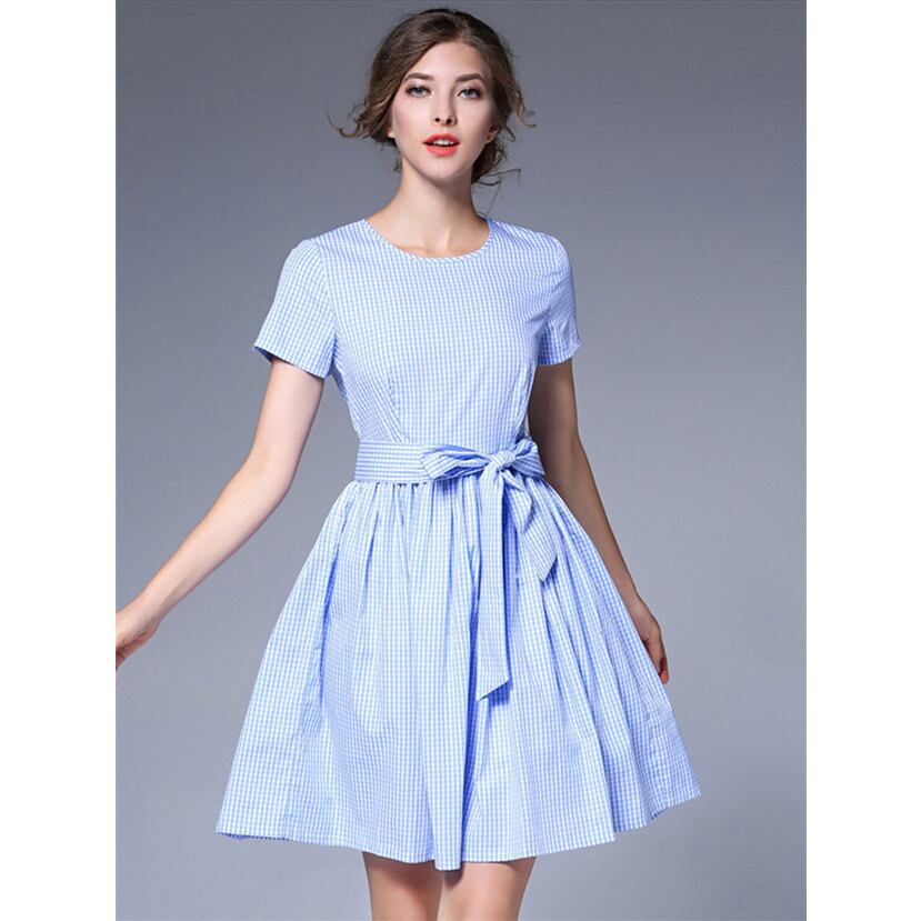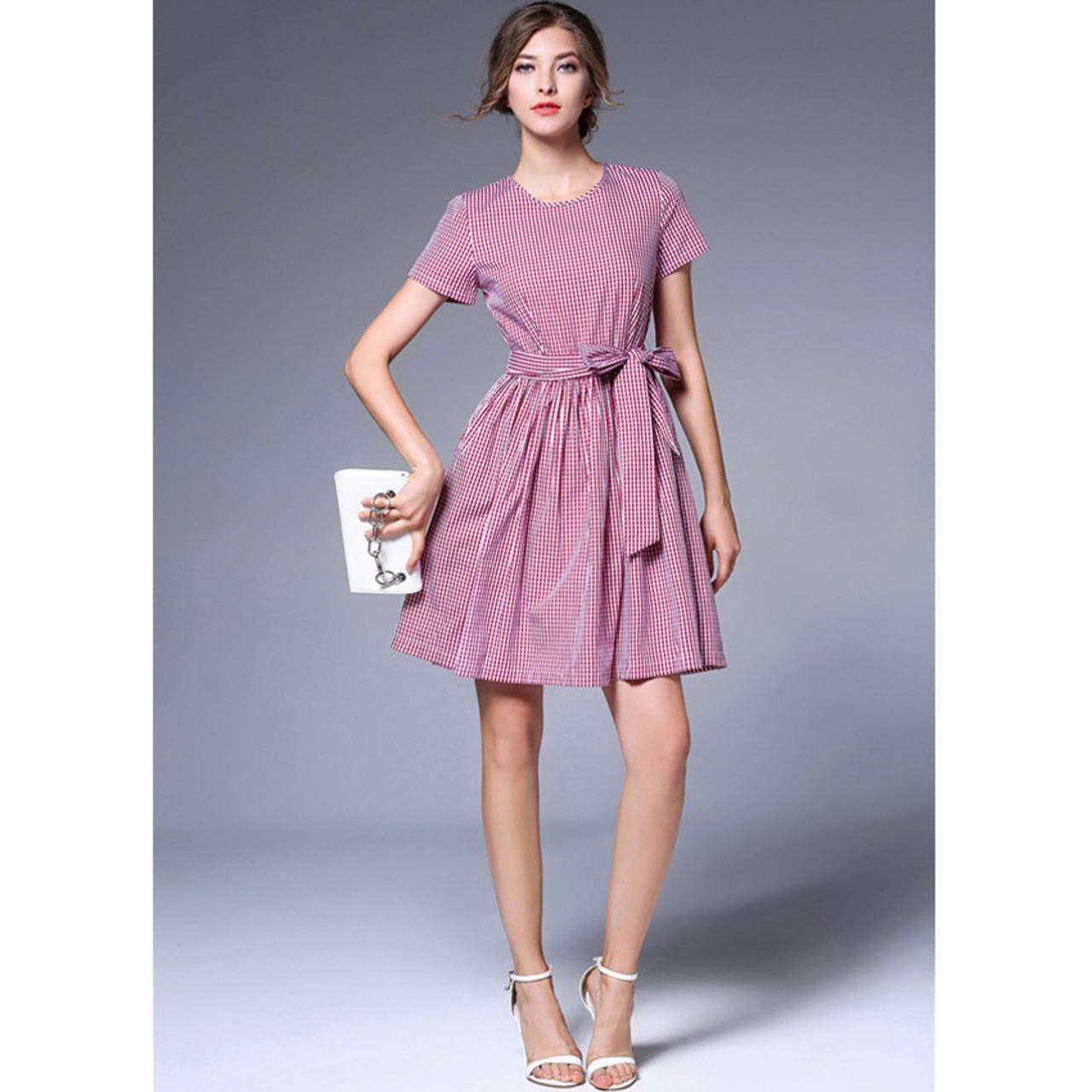 ☆SALE☆ ★爽やかギンガムチェック♪ウエストリボンフレアワンピ全2色★