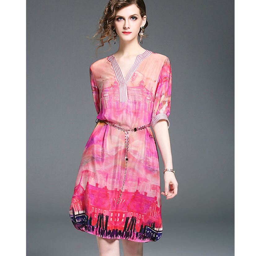 ☆SALE☆ ★異国の街柄♪ストライプライン入りAラインワンピース★