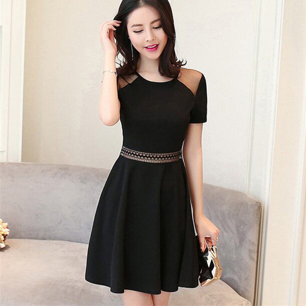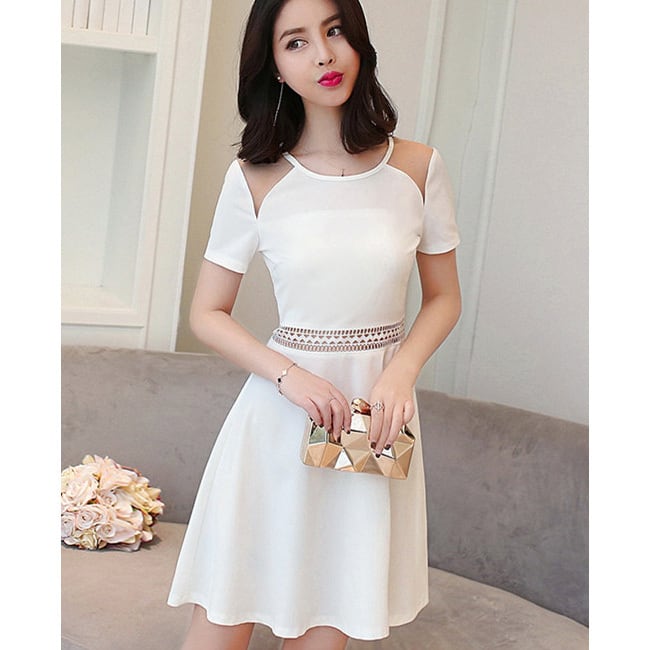 ☆SALE☆ ★肩&ウエストメッシュ♪フレアーミニワンピース全2色★